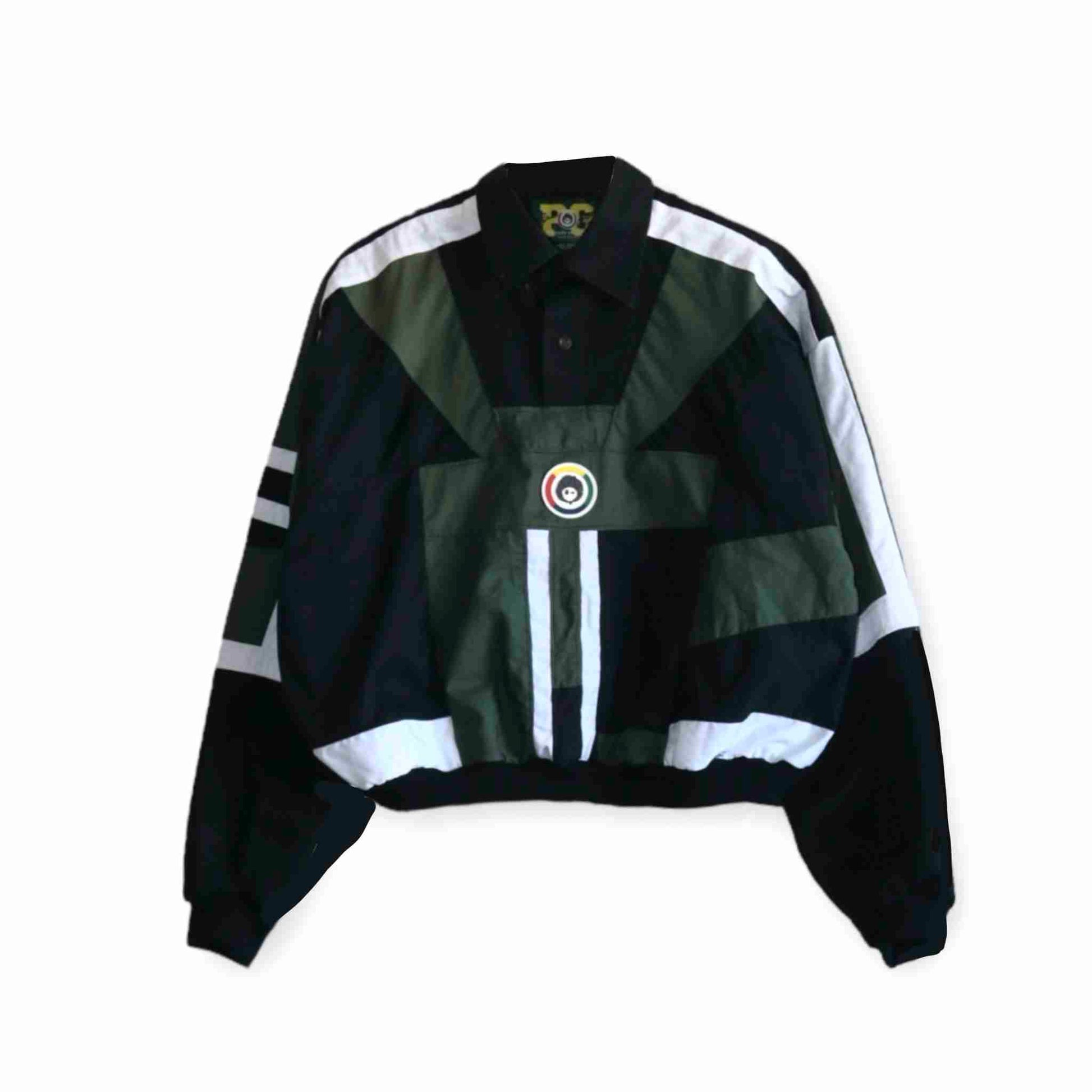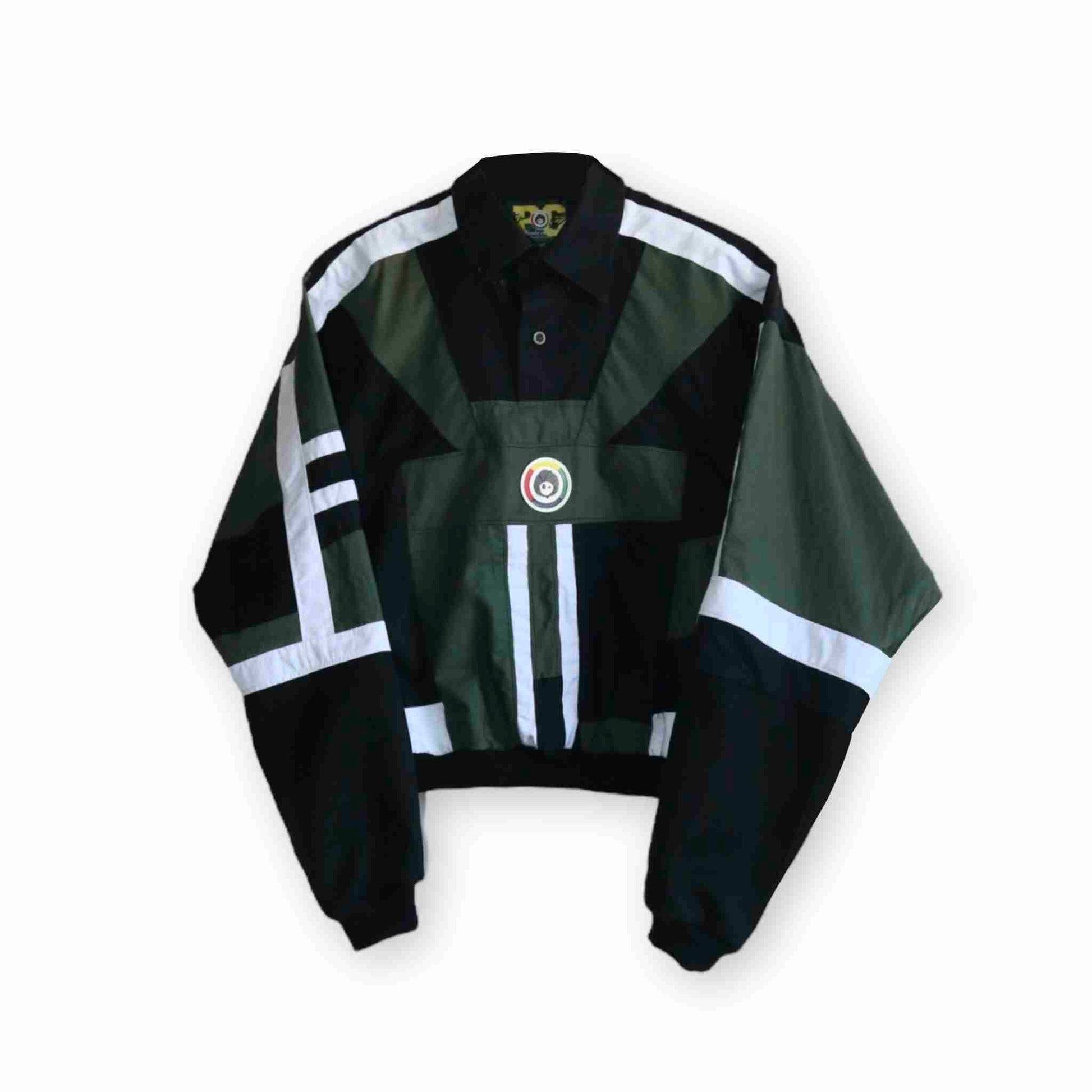 Prenda creada en base a camisas de franela y chaqueta liviana. Posee bardado color blanco en la espalda y logo en goma pvc en el pecho. Tiene pretina de polerón y botones a media altura.