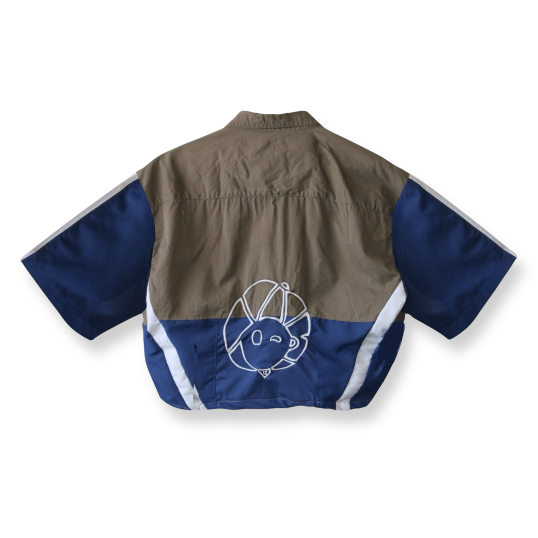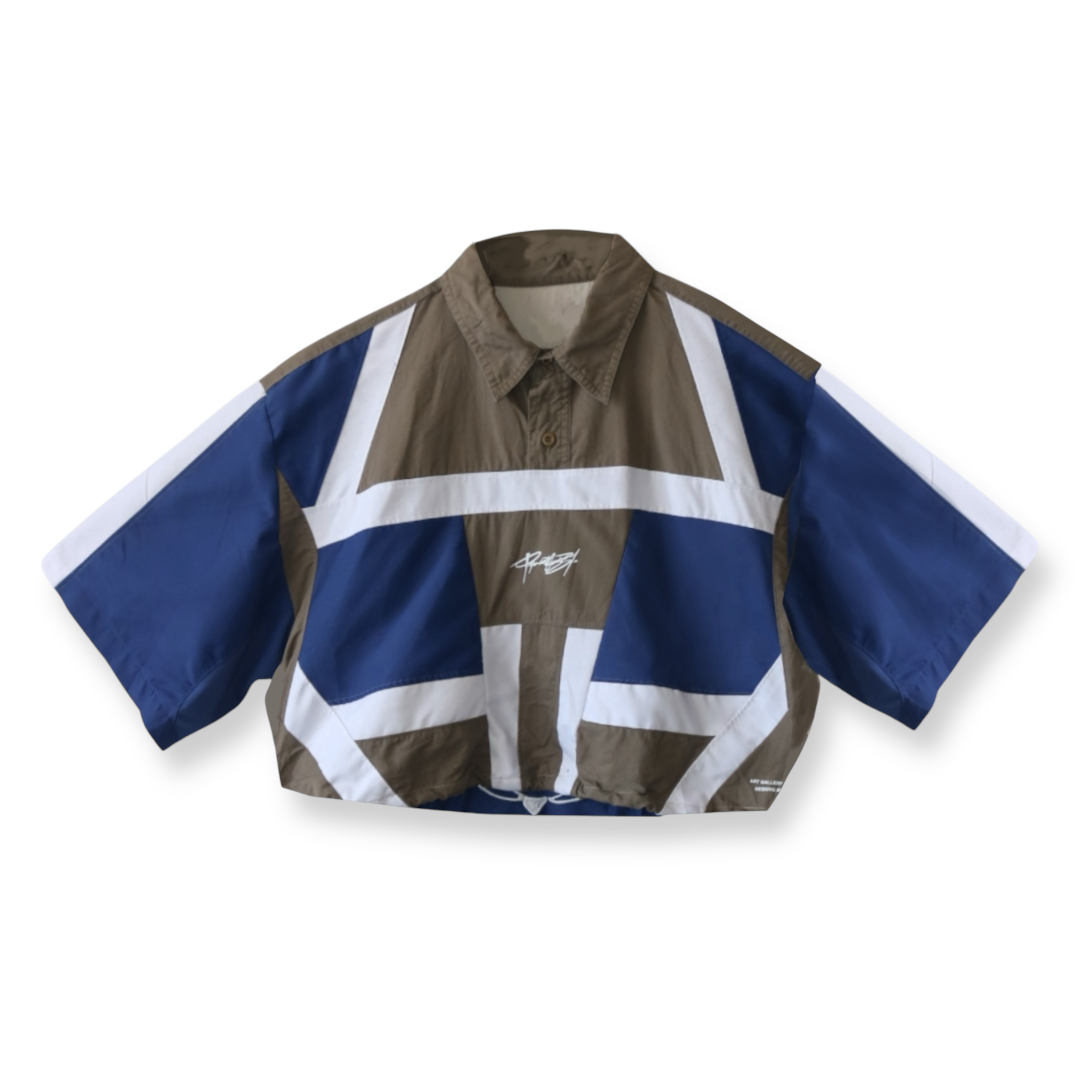 Prenda creada con retazos de camisas de franela delgada, bordado color blanco en la espalda y logo de DTF en el pecho. Tiene elástico ajustable en la pretina.