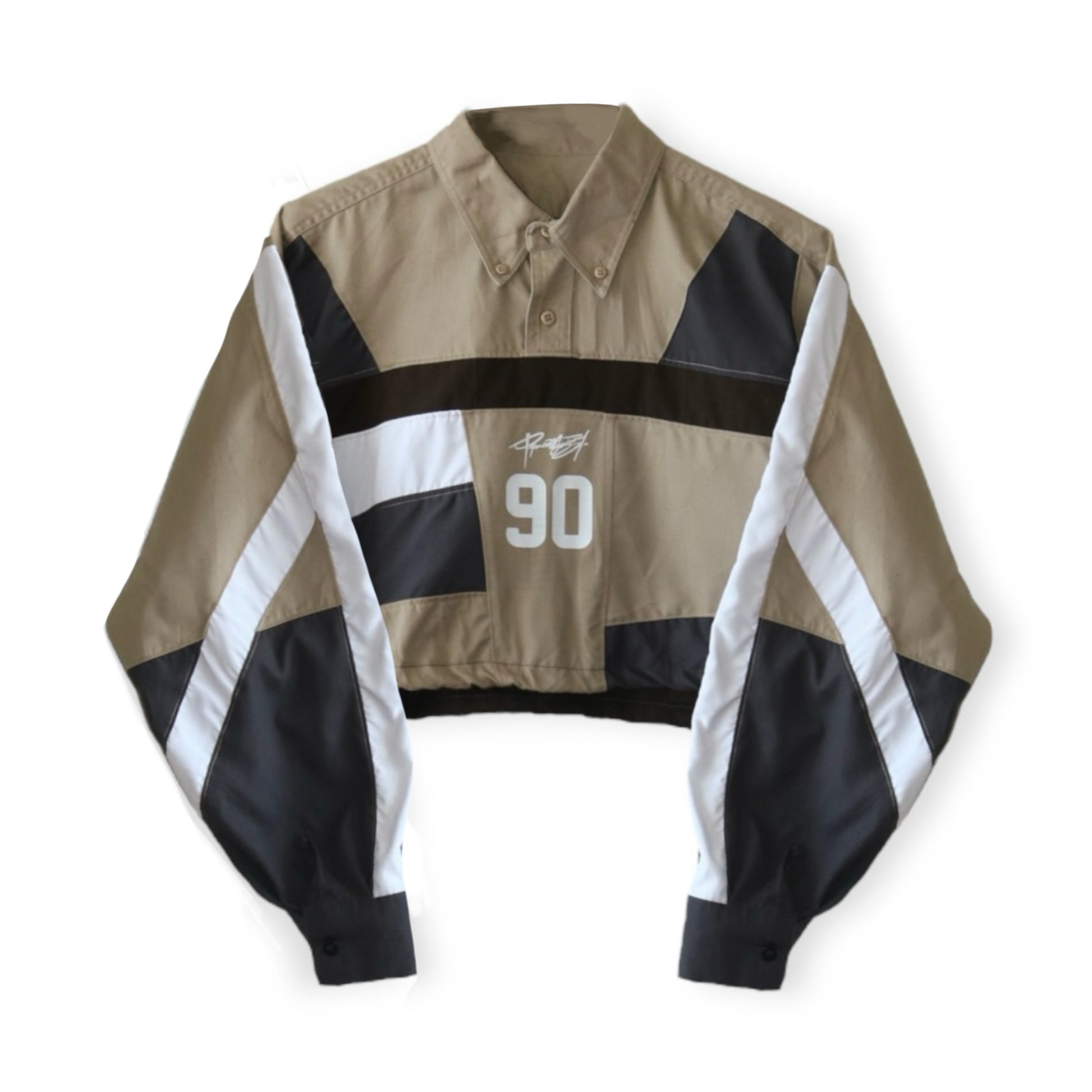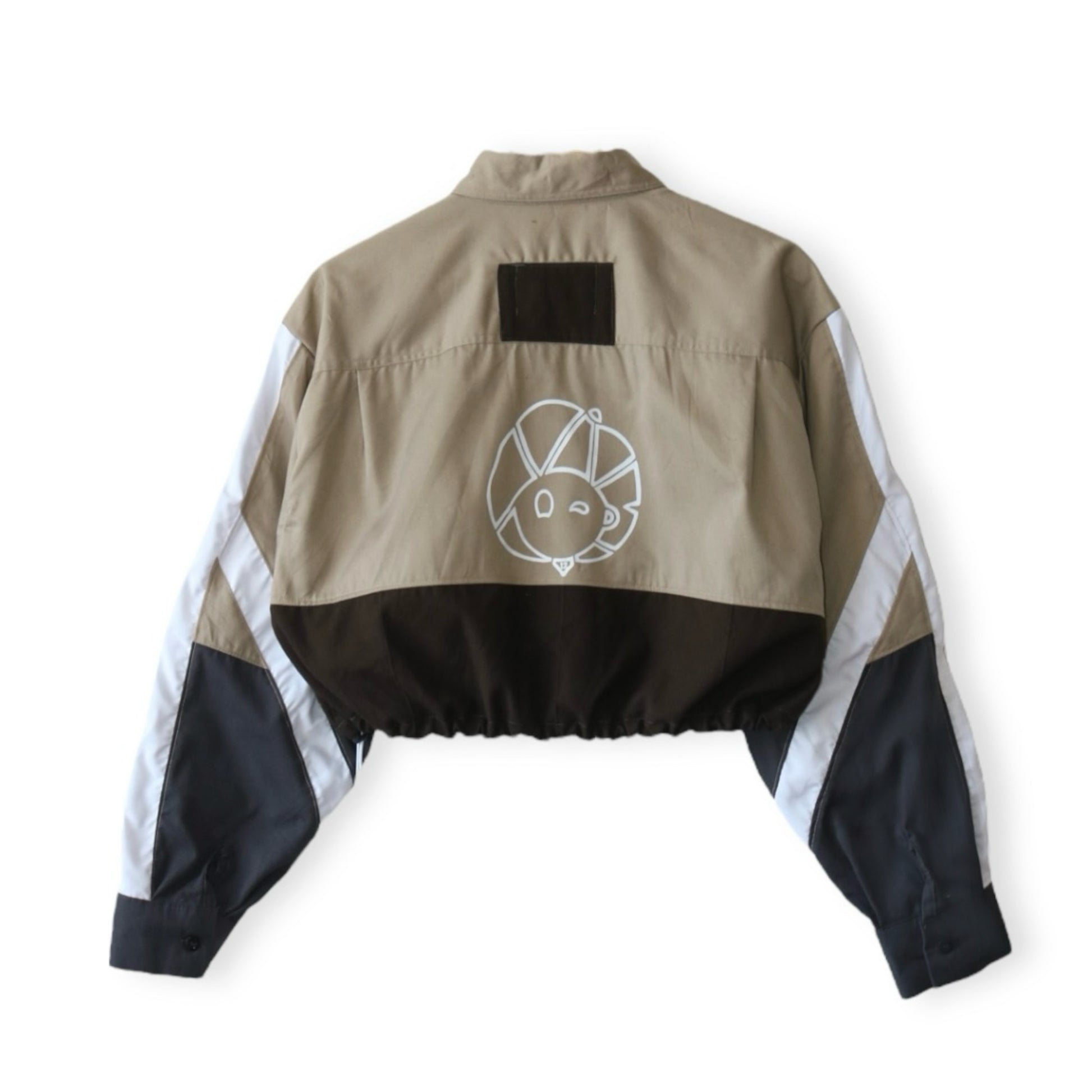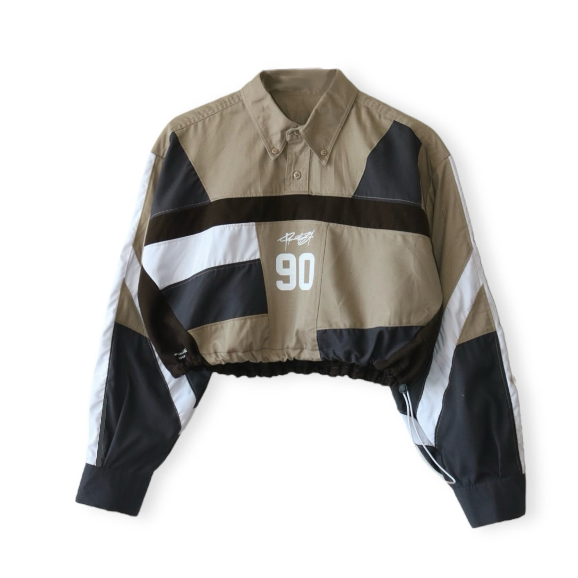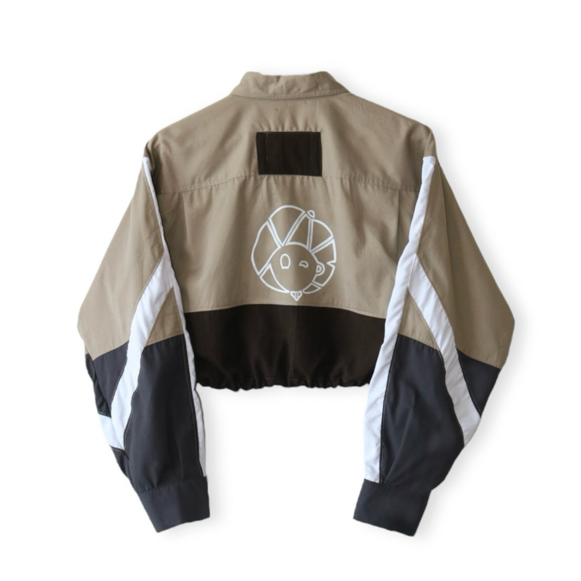 Prenda creada con retazos de camisas de franela delgada, diseño en impresión blanca en la parte frontal y espalda. Tiene elástico ajustable en la pretina. Puños de polerón