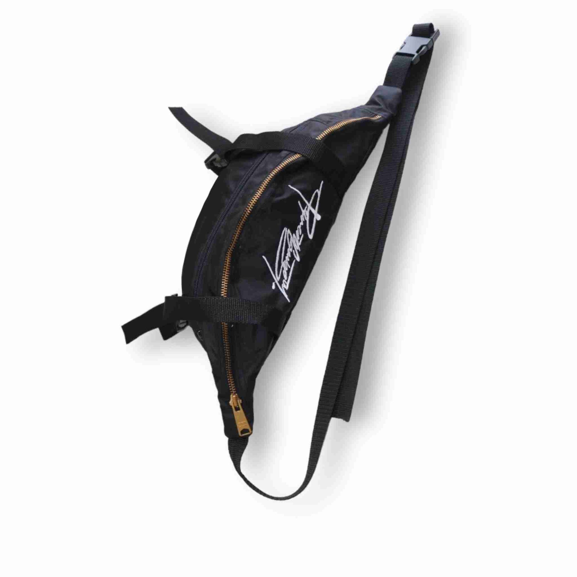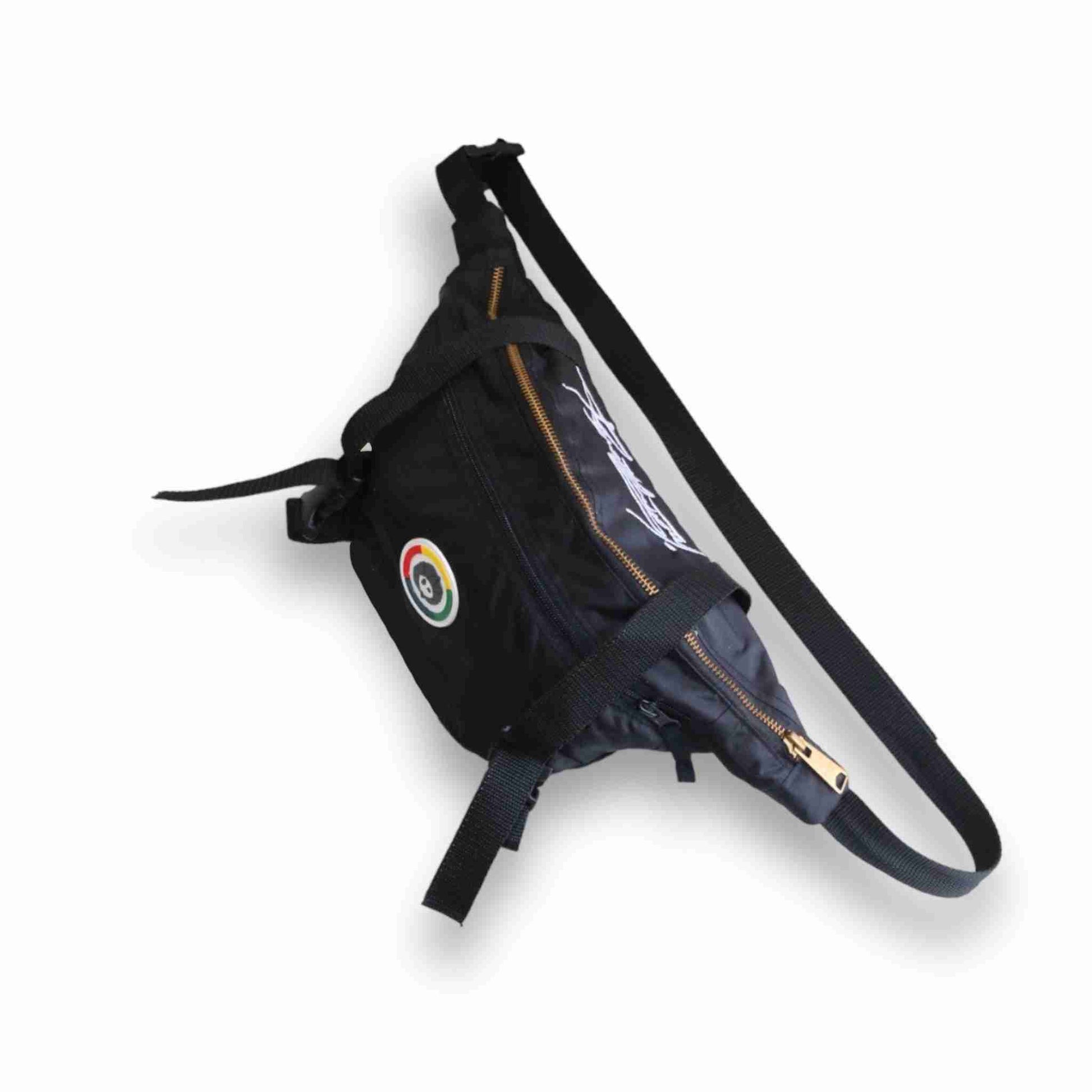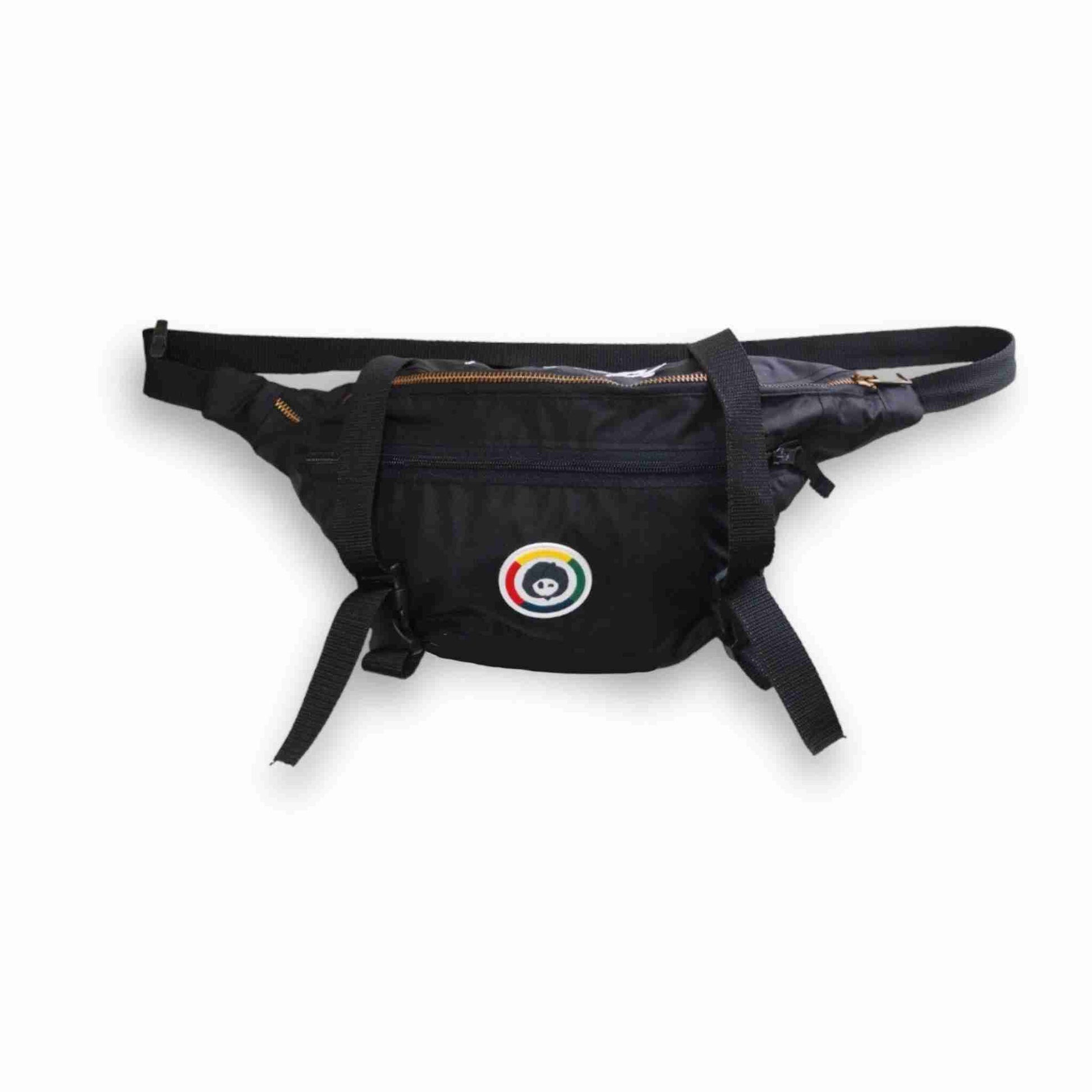 Producto creado en base a retazos de camisas de franela y chaquetas livianas, tiene bordado blanco y logo en goma de pvc. Correa ajustable color negro