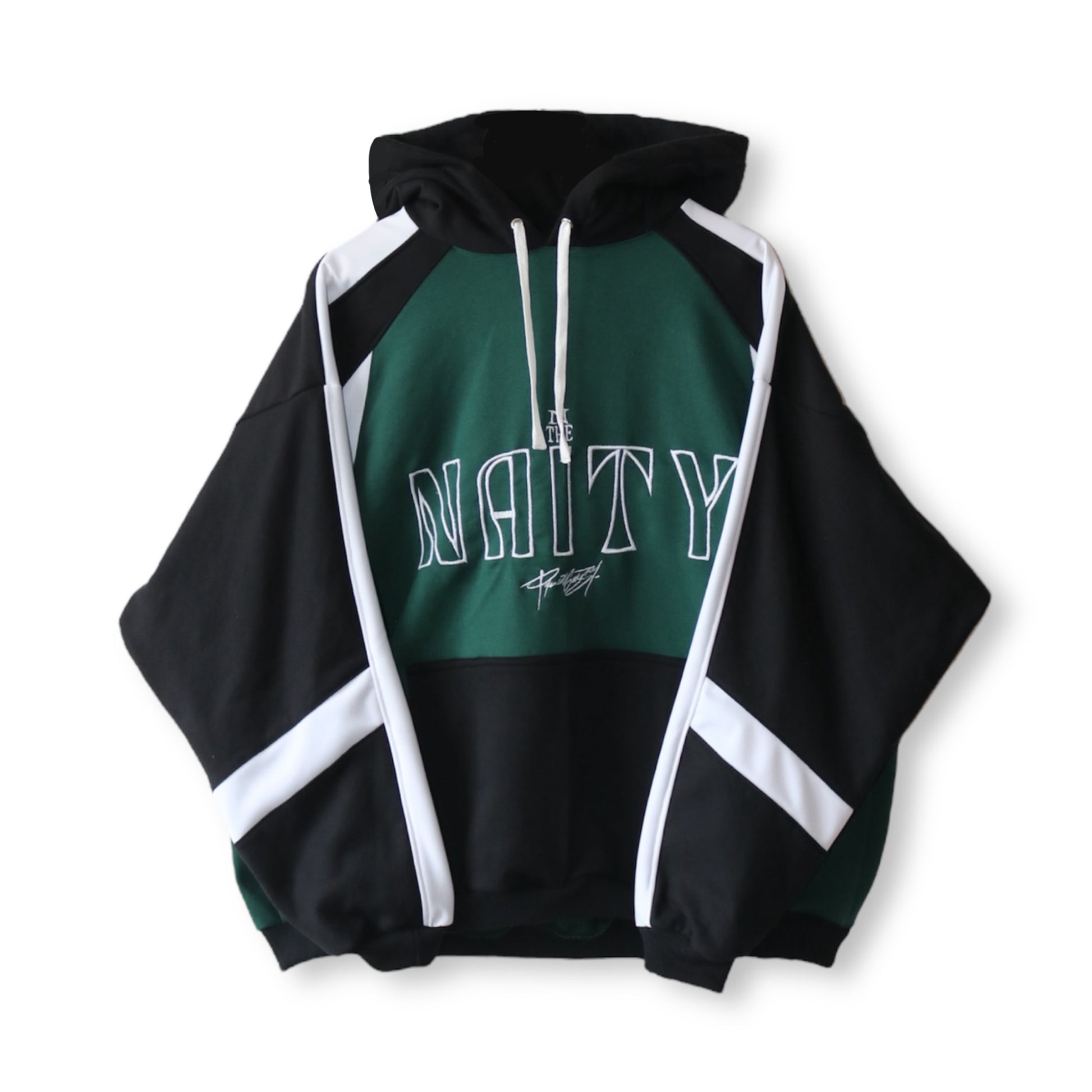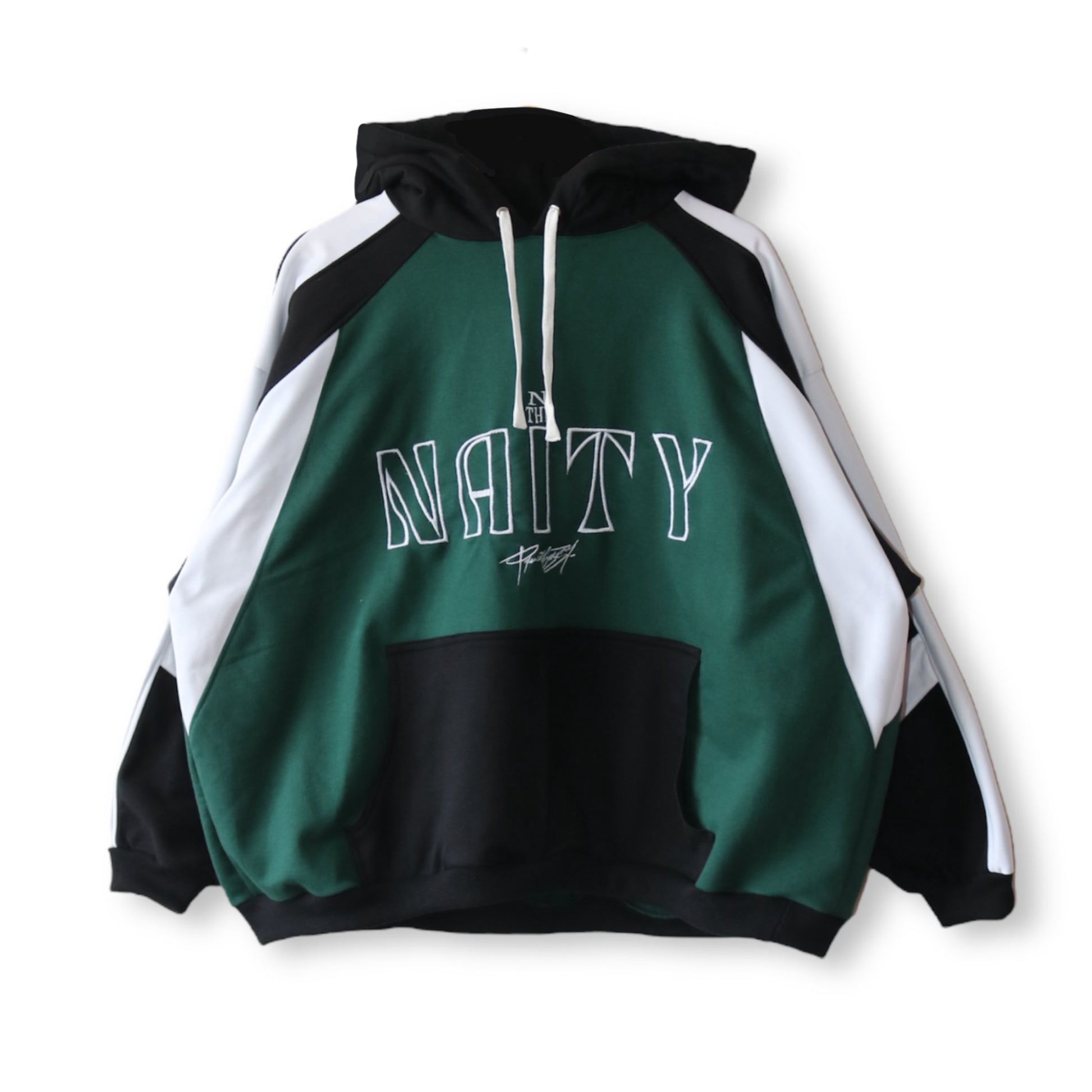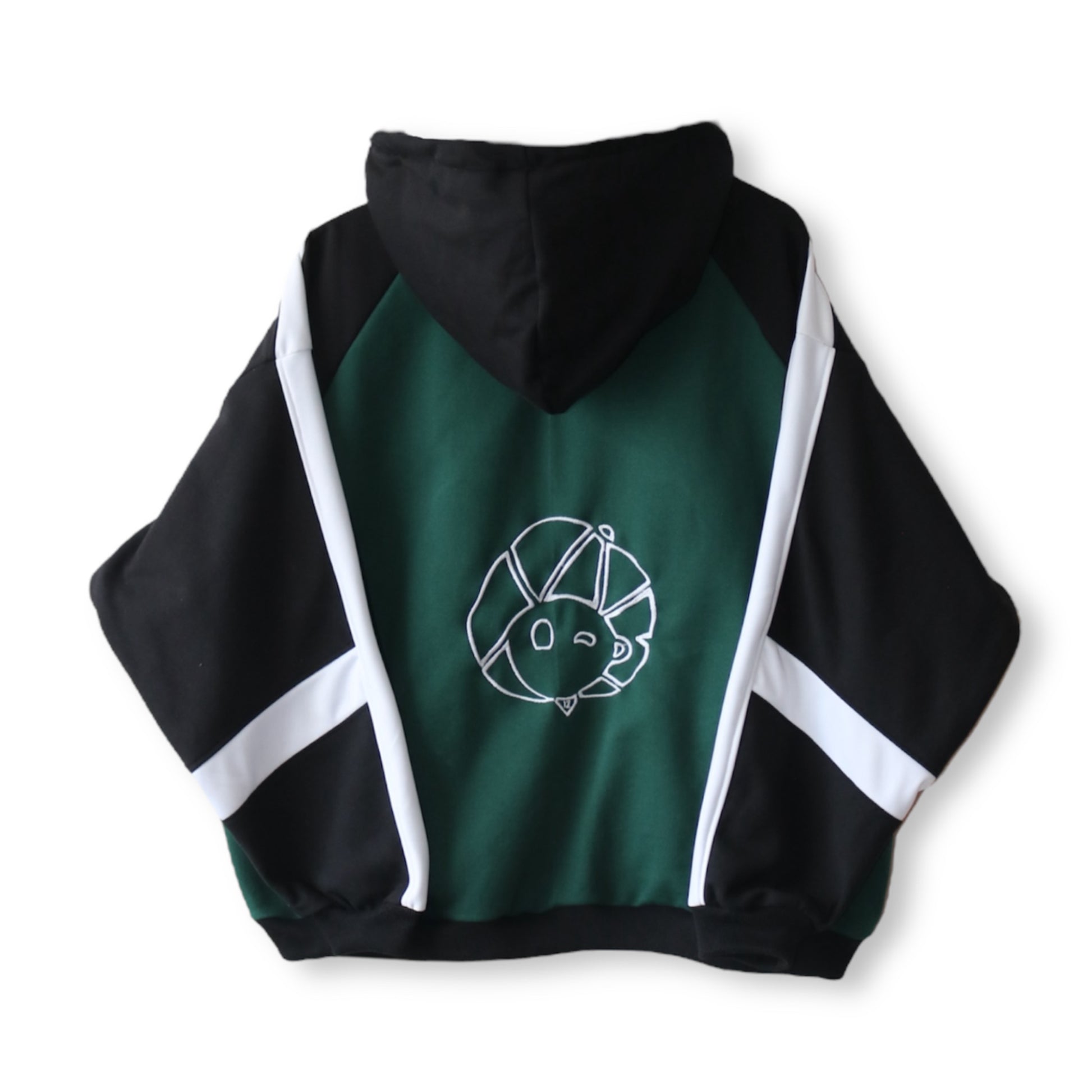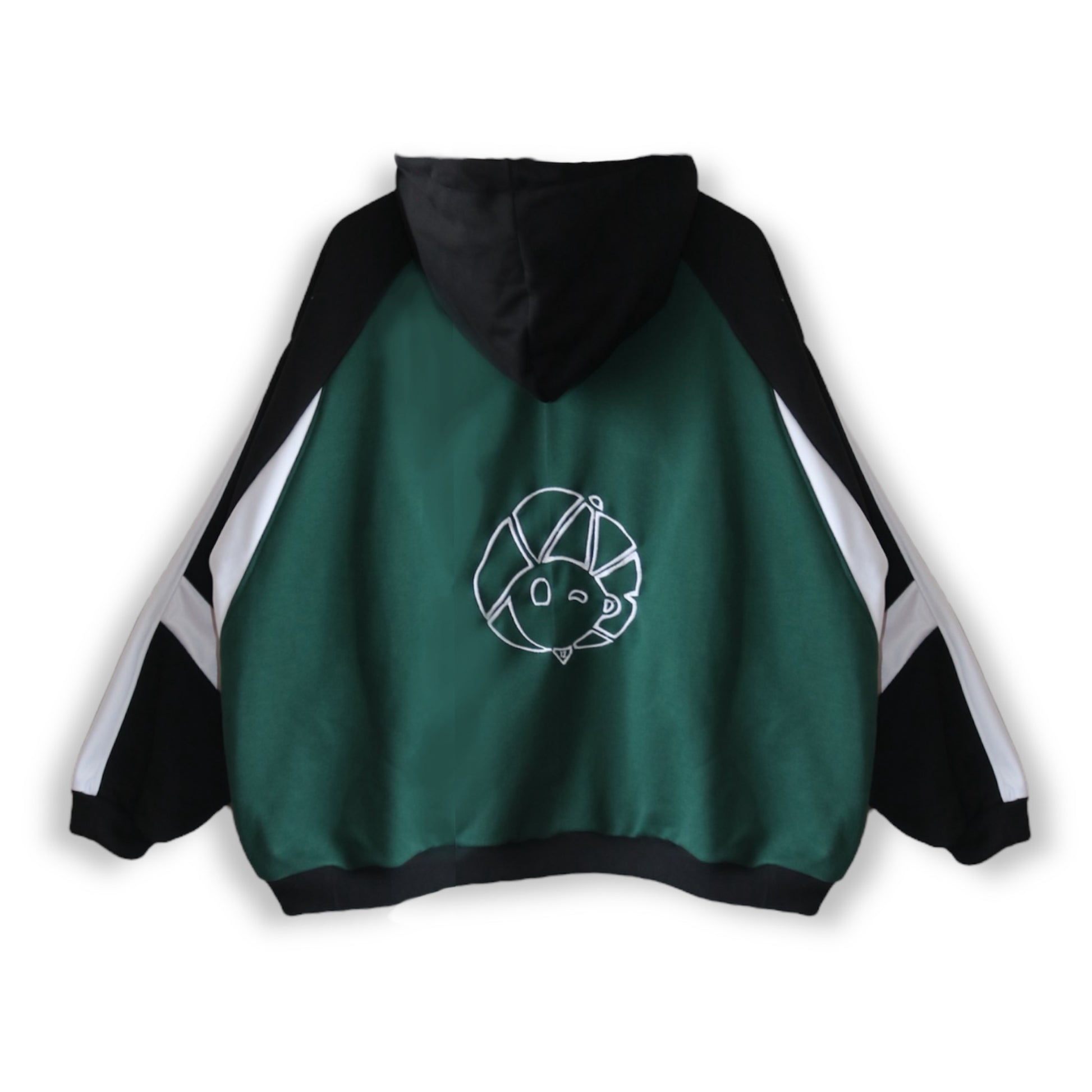 Prenda Oversize cómoda y de calidad para tu outfit, tiene gorro grande con cordones blanco, detalles en bordado y estampado en color blanco, bolsillo canguro.