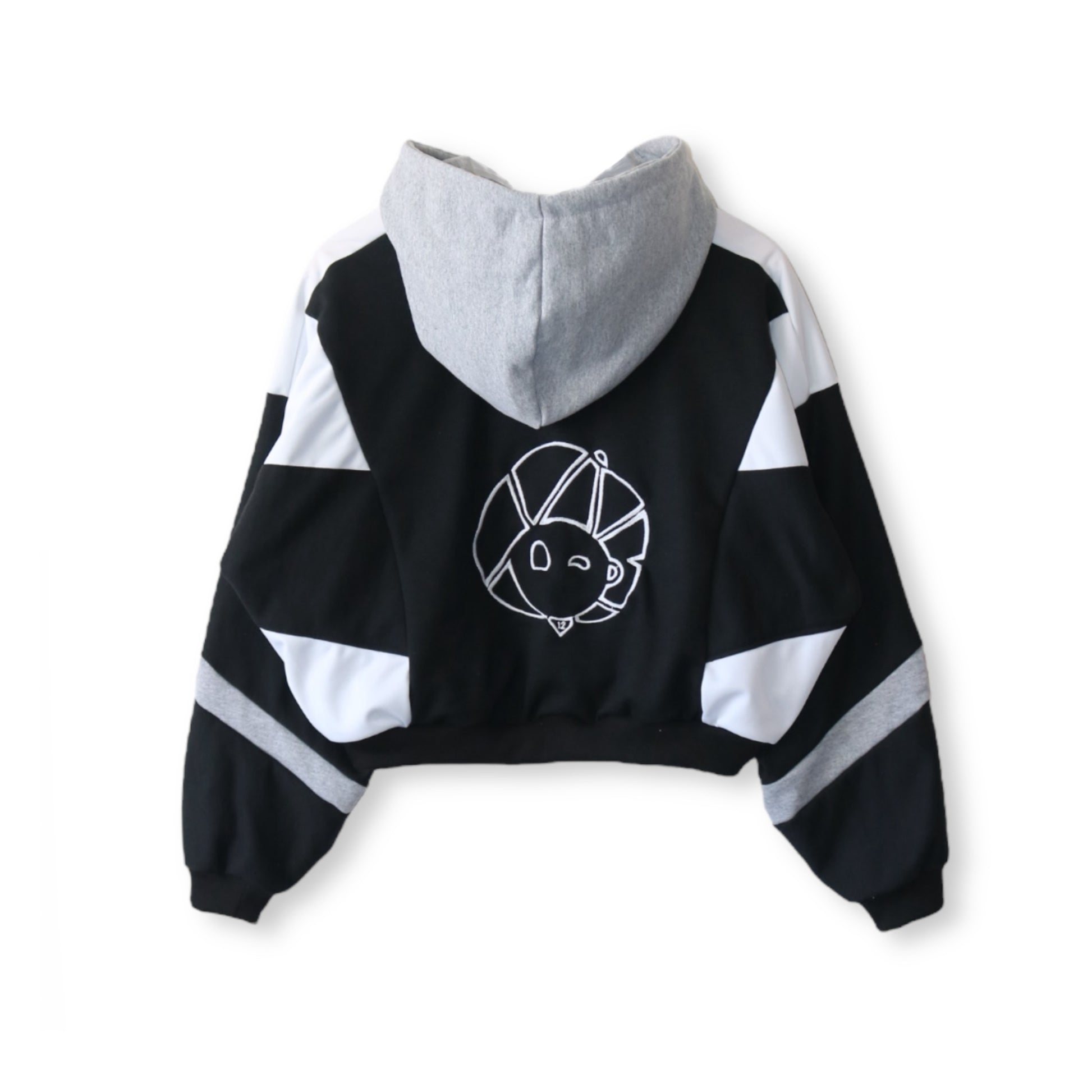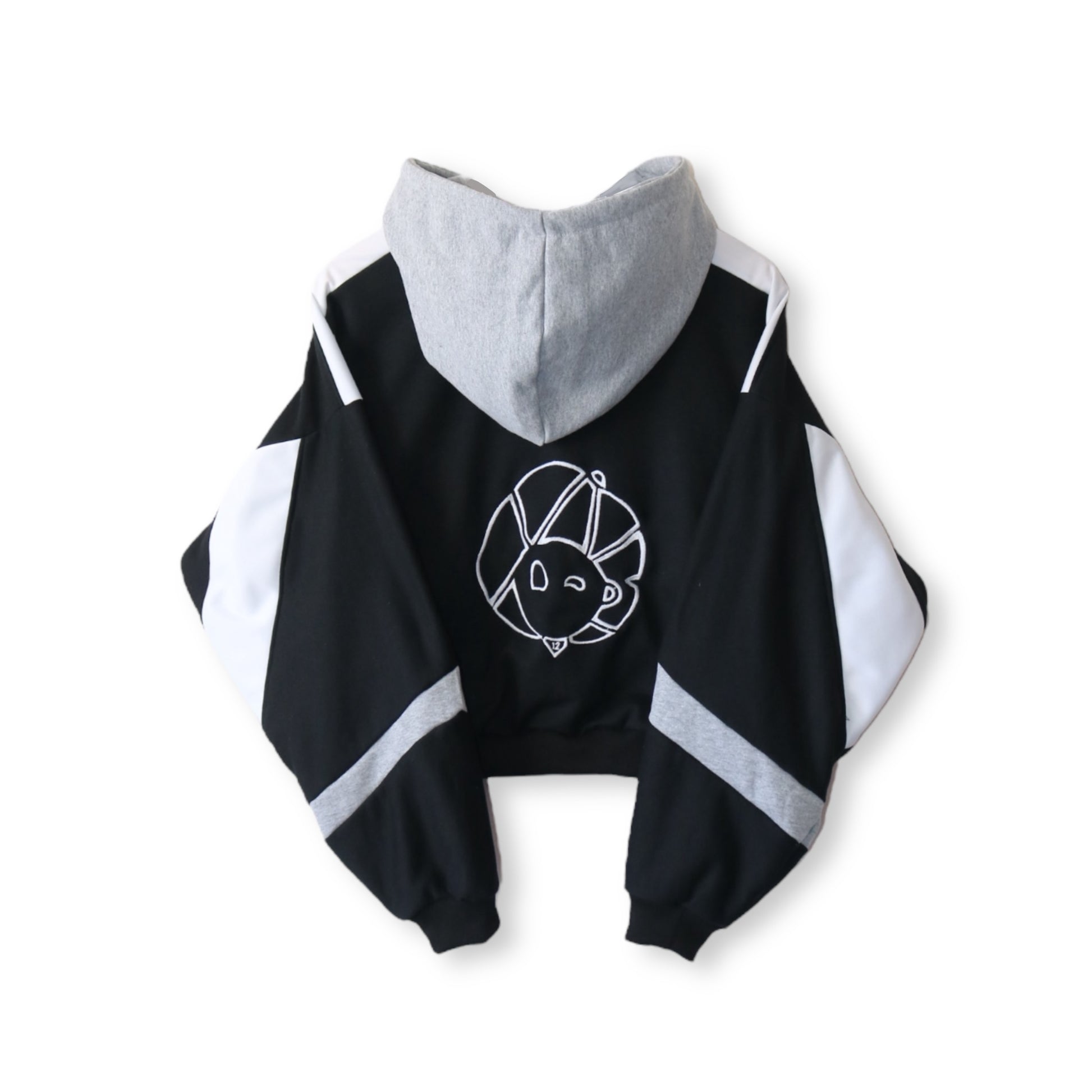 Prenda creada con tela de franela algodón con detalles en franela de fantasía, posee bardado color blanco en la parte frontal y espalda. Gorro y Bolsillo canguro grandes
