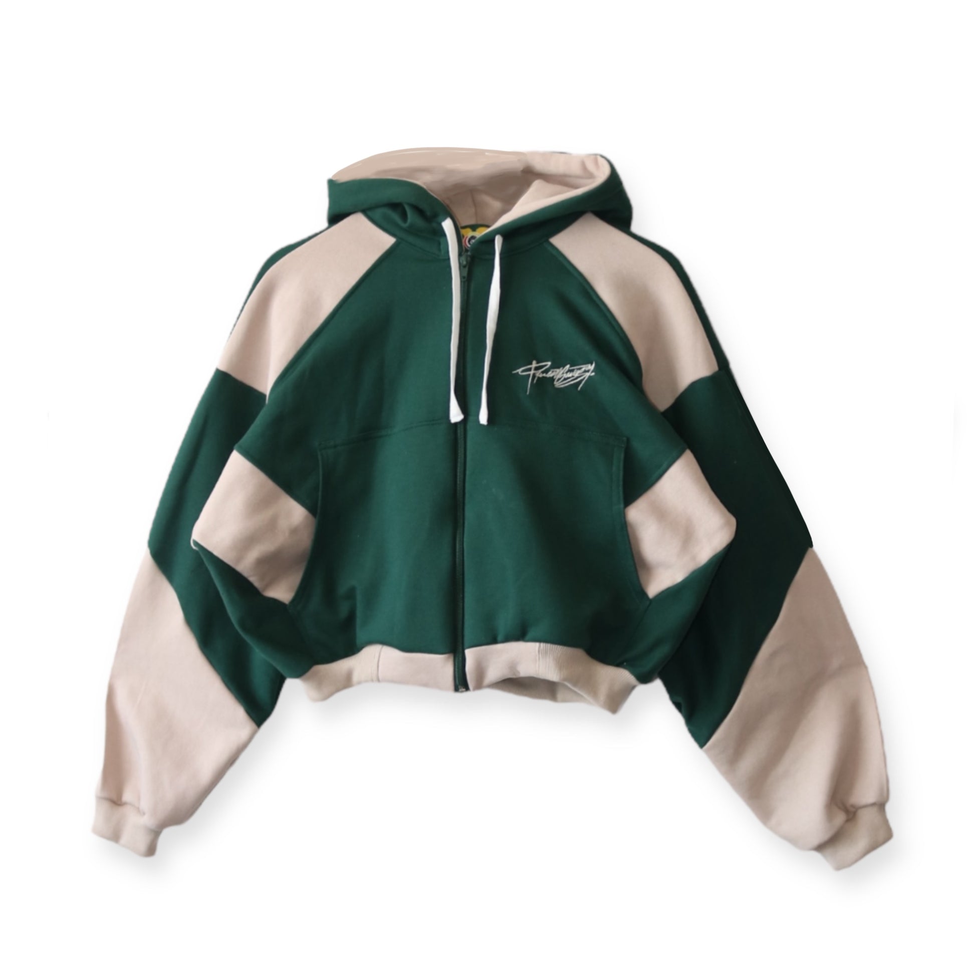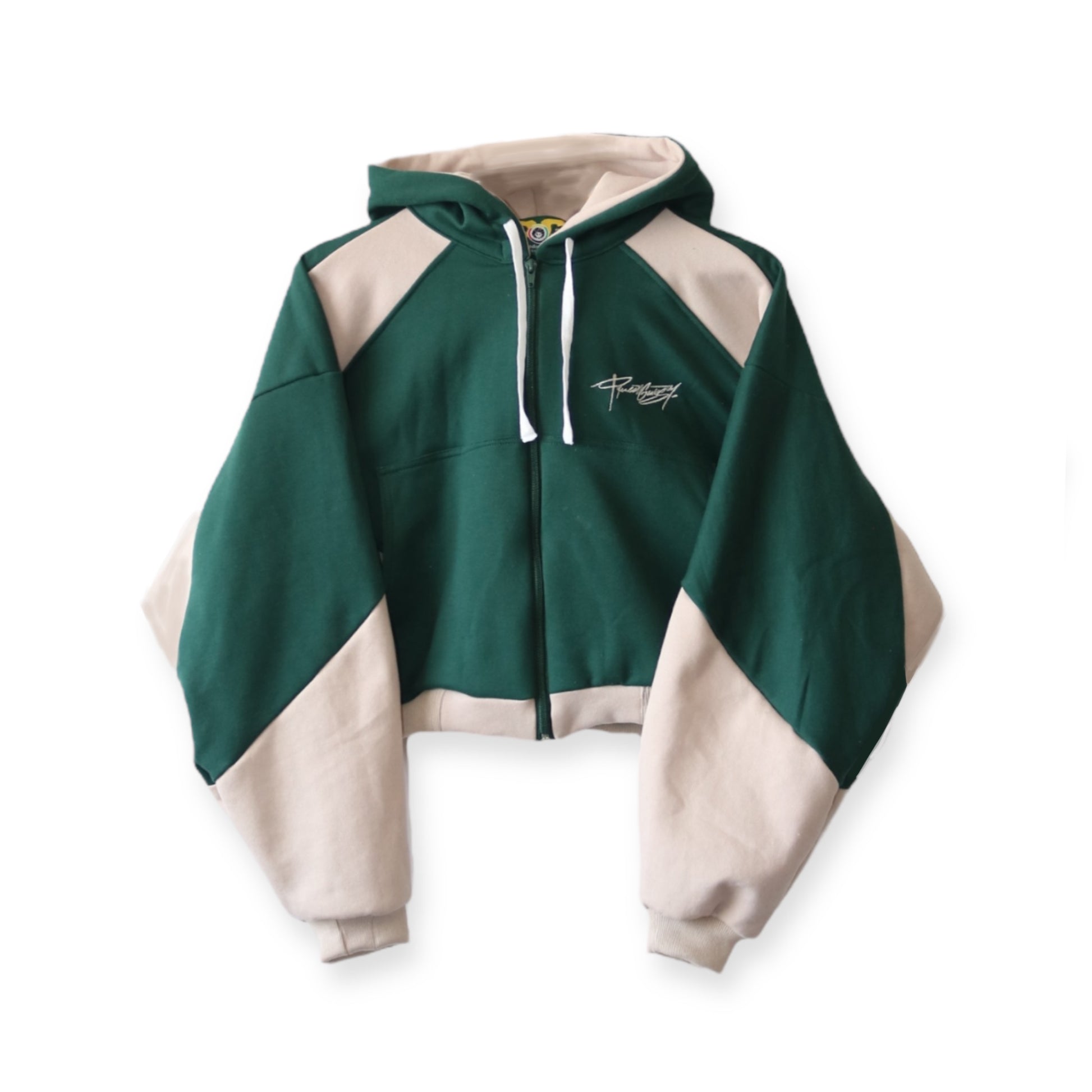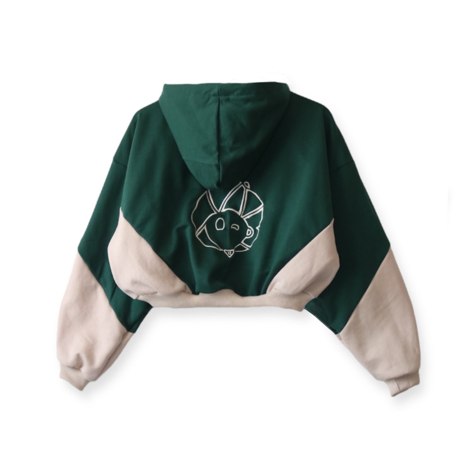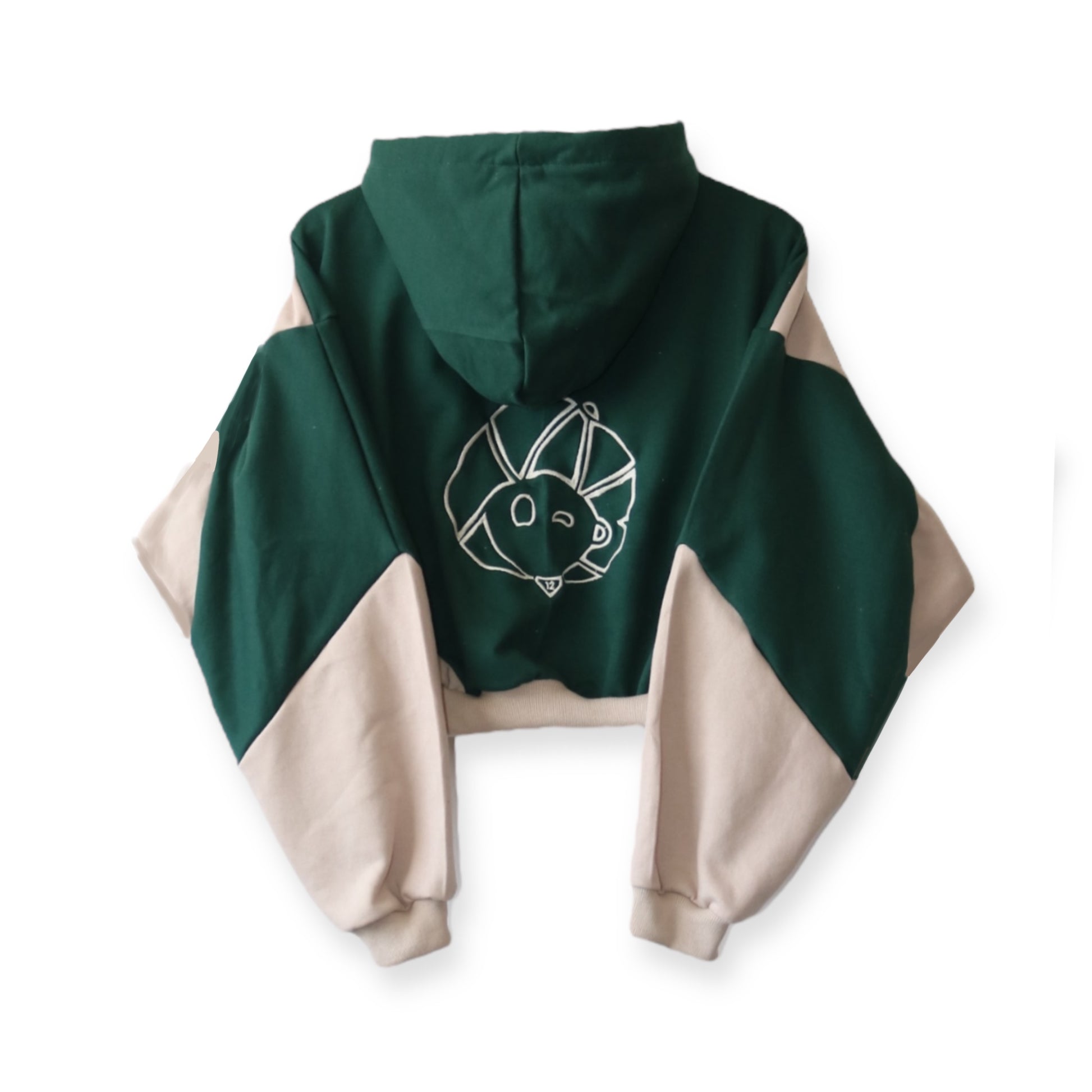 Prenda creada con tela de franela algodón, posee bardado color Beige en la parte frontal y espalda. Bolsillo canguro y gorro grande